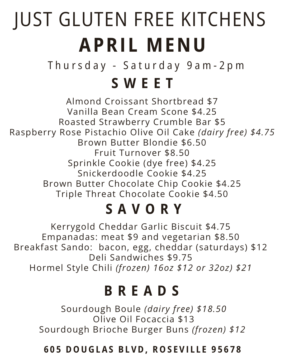 Thursday - Saturday 9am-2pm.